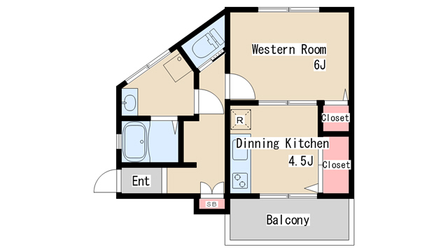 | 間取り | 1DK | 間取り詳細 | 洋室6 DK4.5 |