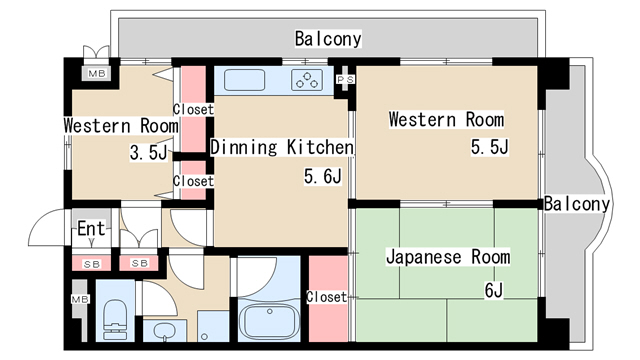 | 間取り | 3DK | 間取り詳細 | 和室6 洋室3.5 洋室5.5 |