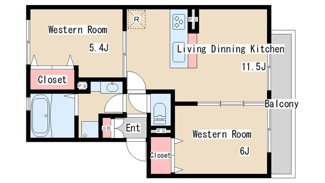 | 間取り | 2LDK | 間取り詳細 | 洋室5.4 洋室6 LDK11.5 |