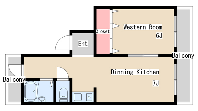 | 間取り | 1DK | 間取り詳細 | 洋室6 DK7 |