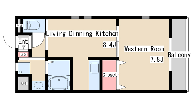 | 間取り | 1LDK | 間取り詳細 | 洋室7.8 LDK8.4 |