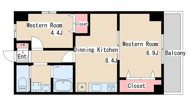 | 間取り | 2DK | 間取り詳細 | 洋室4.4 洋室6.9 DK8.4 |