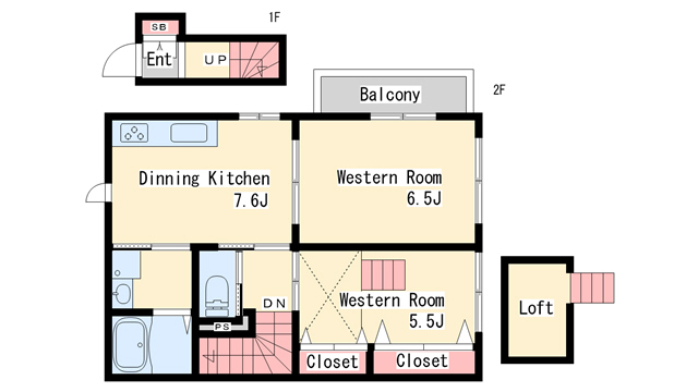| 間取り | 2DK | 間取り詳細 | 洋室5.6 洋室6.5 DK7.6 |