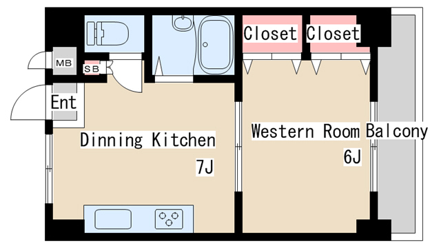 | 間取り | 1DK | 間取り詳細 | 洋室6 DK7 |