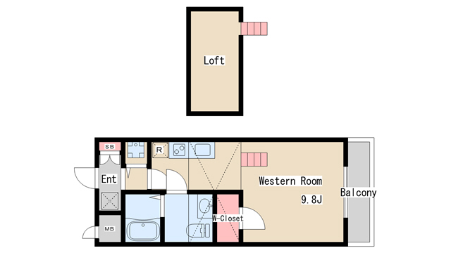 | 間取り | ワンルーム | 間取り詳細 | 洋室9.8 |