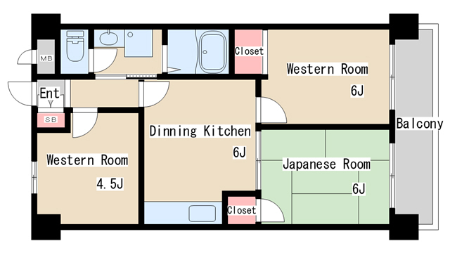 | 間取り | 3DK | 間取り詳細 | 和室6 洋室4.5 洋室6 DK6 |
