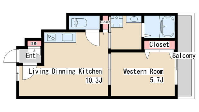 | 間取り | 1LDK | 間取り詳細 | 洋室5.7 |
