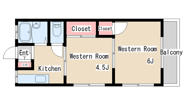 | 間取り | 2K | 間取り詳細 | 洋室4.5 洋室6 K3 |