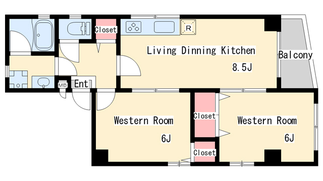 | 間取り | 2DK | 間取り詳細 | 洋室6 洋室6 DK8.5 |