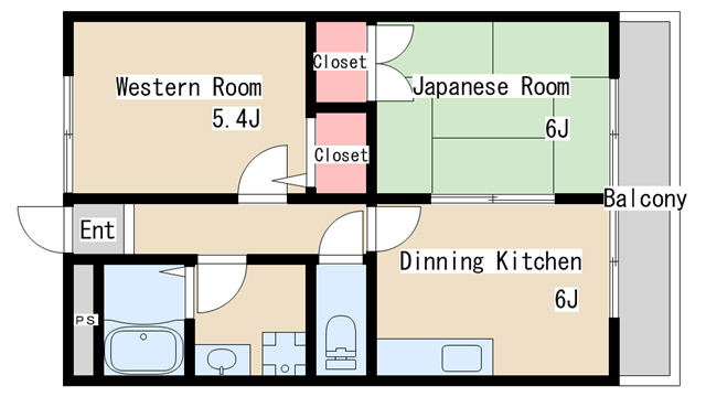 | 間取り | 2DK | 間取り詳細 | 和室6 洋室5.4 DK6 |