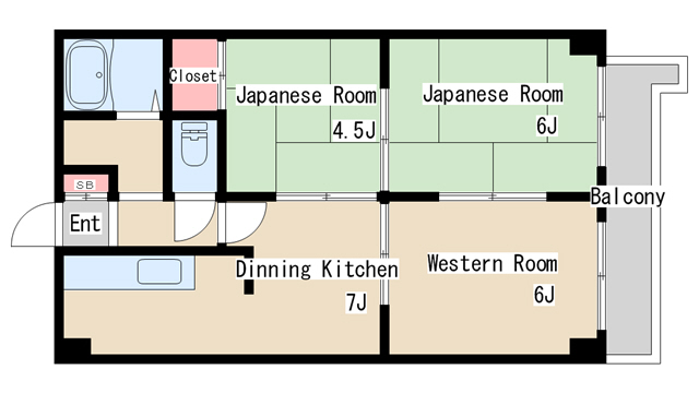 | 間取り | 3DK | 間取り詳細 | 和室4.5 和室6 洋室6 DK7.5 |