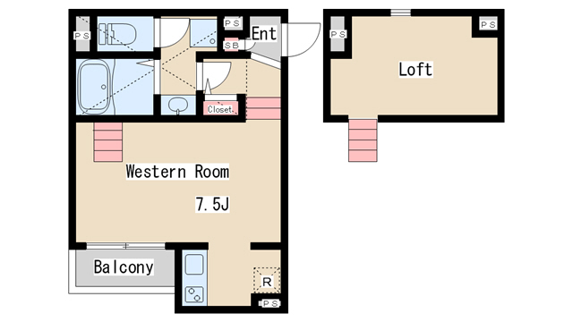| 間取り | ワンルーム | 間取り詳細 | 洋室7.5 |