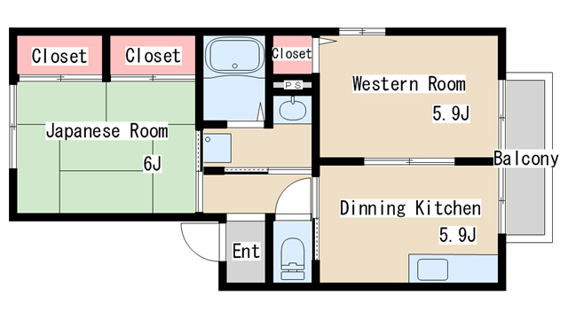 | 間取り | 2DK | 間取り詳細 | 和室6 洋室5.9 DK5.9 |