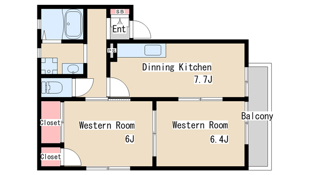| 間取り | 2DK | 間取り詳細 | 洋室6.4 洋室6 DK7.7 |
