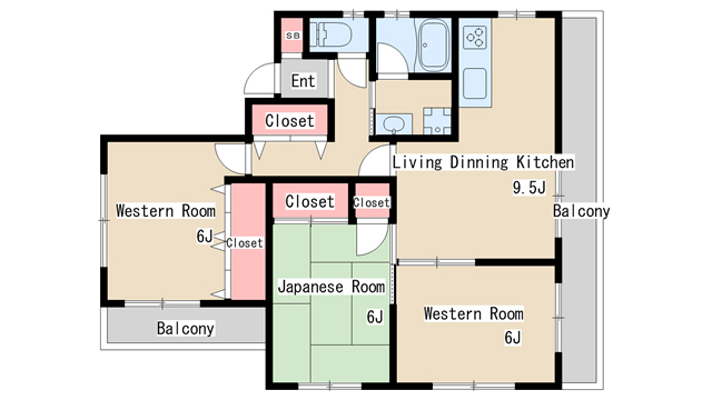 | 間取り | 3LDK | 間取り詳細 | 和室6 洋室6 洋室6 LDK9.5 |
