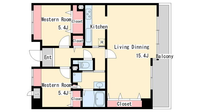 | 間取り | 2LDK | 間取り詳細 | 洋室5.4 洋室5.4 LDK15.4 |