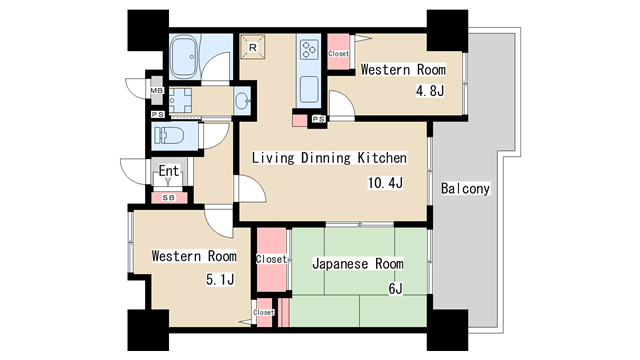 | 間取り | 3LDK | 間取り詳細 | 和室6 洋室4.8 洋室5.1 |