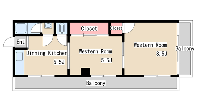 | 間取り | 2DK | 間取り詳細 | 洋室5.5 洋室8.5 |