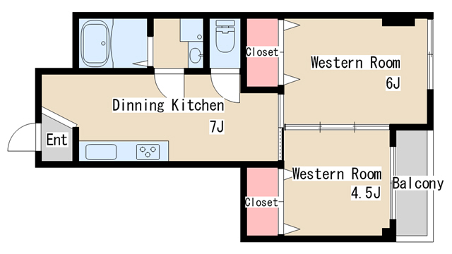 | 間取り | 2DK | 間取り詳細 | 和室6 洋室4.5 |