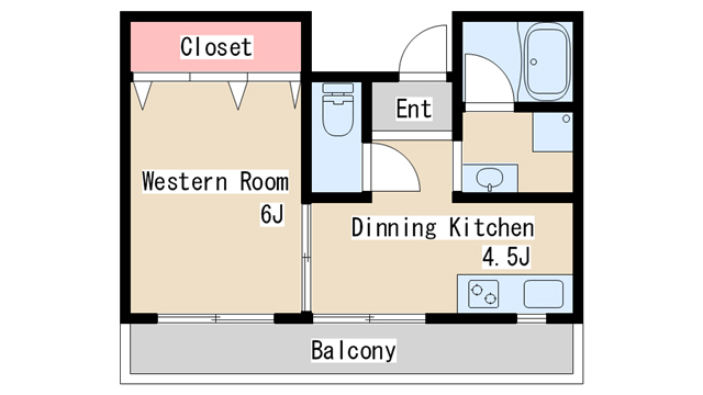 | 間取り | 1DK | 間取り詳細 | 洋室6 DK4.5 |