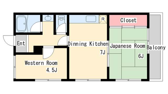 | 間取り | 2DK | 間取り詳細 | 和室6 洋室4.5 |