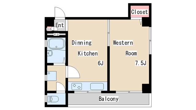 | 間取り | 1DK | 間取り詳細 | 洋室7.5 DK6 |