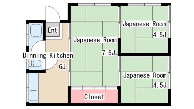 | 間取り | 3DK | 間取り詳細 | 和室7.5 和室4.5 和室4.5 DK6 |