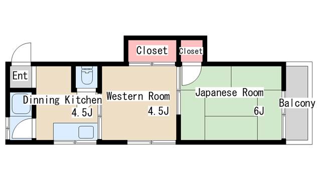 | 間取り | 2DK | 間取り詳細 | 和室4.5 和室6 |