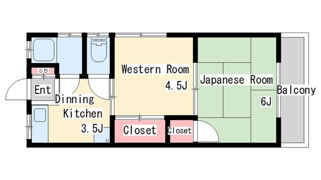 | 間取り | 2DK | 間取り詳細 | 和室6 洋室4.5 DK3.5 |