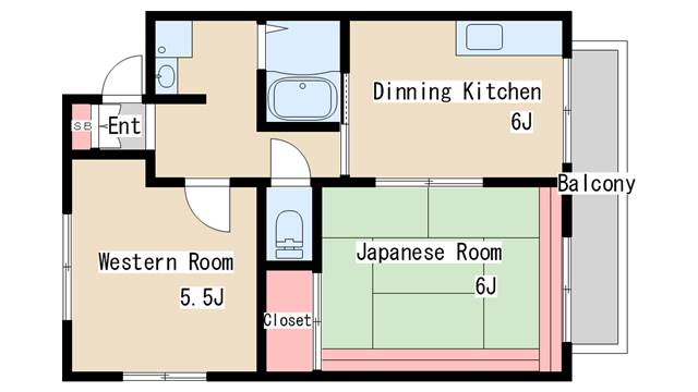 | 間取り | 2DK | 間取り詳細 | 和室6 洋室5.5 |