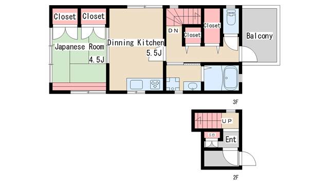 | 間取り | 1DK | 間取り詳細 | 和室4.5 DK5.5 |