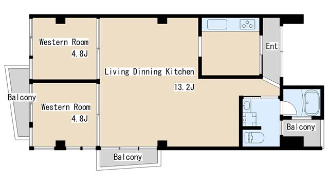 | 間取り | 2LDK | 間取り詳細 | 洋室4.8 洋室4.8 LDK13.2 |