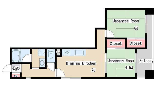 | 間取り | 2DK | 間取り詳細 | 和室6 和室4.5 |