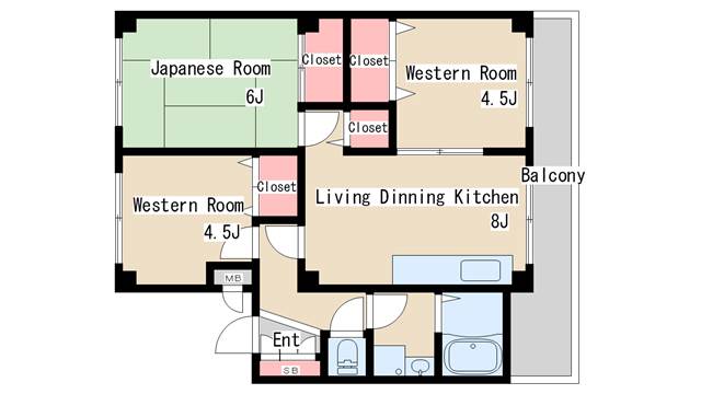 | 間取り | 3LDK | 間取り詳細 | 和室6 洋室4.5 洋室4.5 LDK8 |