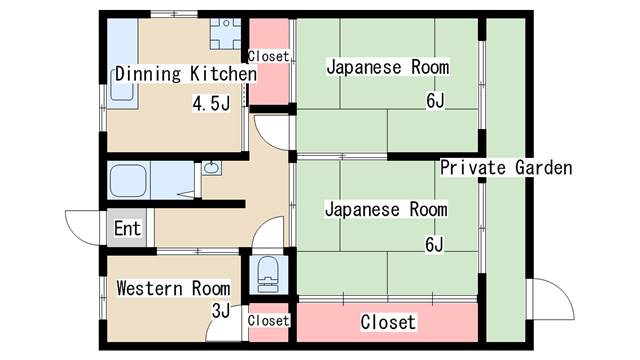 | 間取り | 3DK | 間取り詳細 | 和室6 和室6 洋室3 DK4.5 |