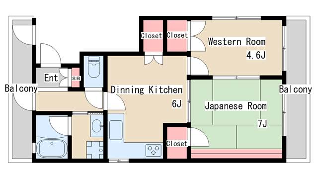 | 間取り | 2DK | 間取り詳細 | 和室7 洋室4.6 |