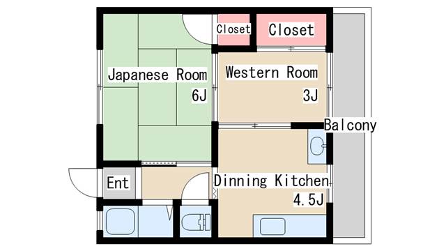 | 間取り | 2K | 間取り詳細 | 和室6 洋室4.5 |