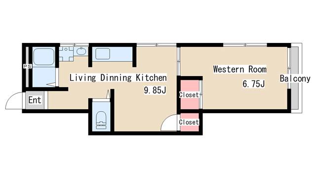 | 間取り | 1LDK | 間取り詳細 | 洋室6.75 LDK9.85 |