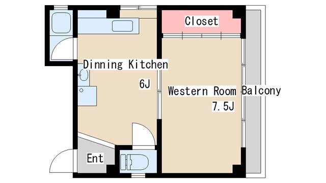 | 間取り | 1DK | 間取り詳細 | 洋室7.5 DK6 |