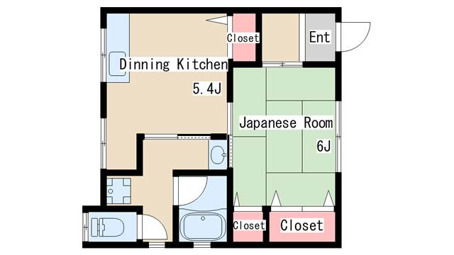 | 間取り | 1DK | 間取り詳細 | 和室6 DK5.4 |