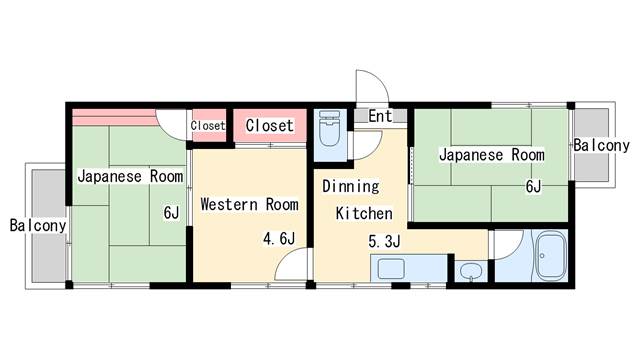 | 間取り | 3DK | 間取り詳細 | 和室6 和室6 洋室4.6 DK5.3 |
