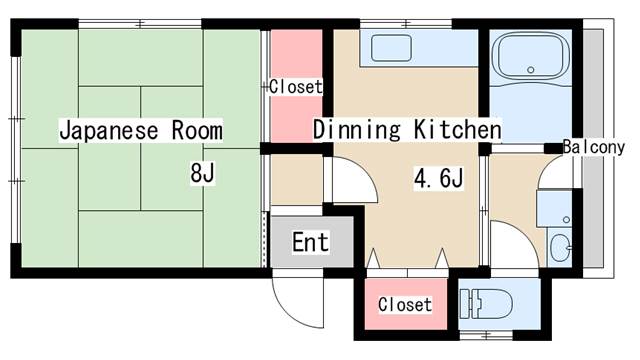 | 間取り | 1DK | 間取り詳細 | 和室8 DK4.5 |