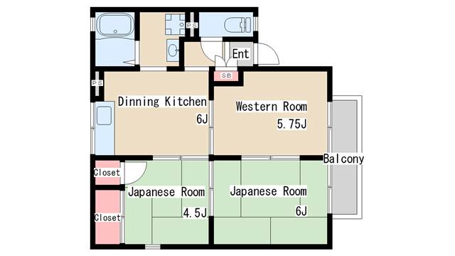 | 間取り | 3DK | 間取り詳細 | 和室4.5 和室6 洋室5.75 |