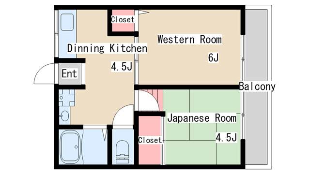 | 間取り | 2DK | 間取り詳細 | 和室4.5 洋室6 |
