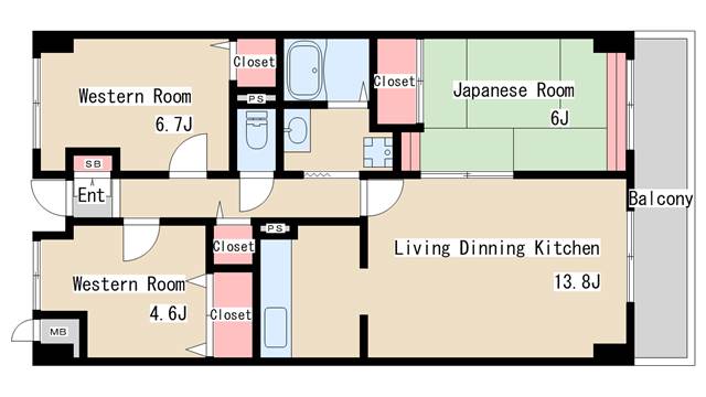 | 間取り | 3LDK | 間取り詳細 | 和室6 洋室4.6 洋室6.71 |