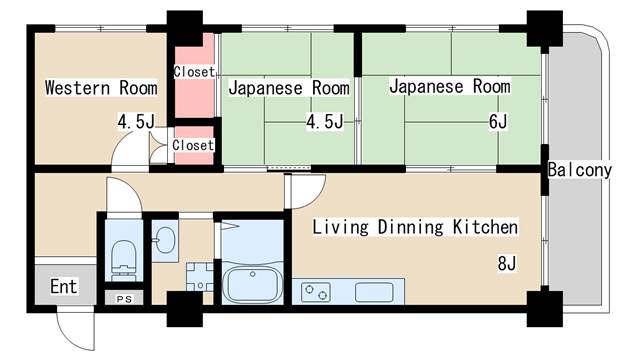 | 間取り | 3LDK | 間取り詳細 | 和室4.5 和室6 洋室4.5 LDK8 |