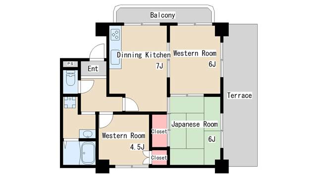 | 間取り | 3DK | 間取り詳細 | 和室6 洋室4.5 洋室6 DK7 |