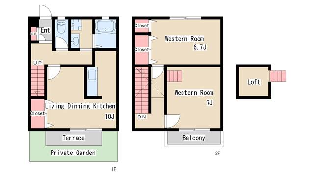 | その他・特徴 | 二人入居可、オンライン内見可、オンライン相談可、陽当り良好、通風良好、フローリング、メゾネット、ロフト、専用庭、公共下水、公営水道、都市ガス | ||