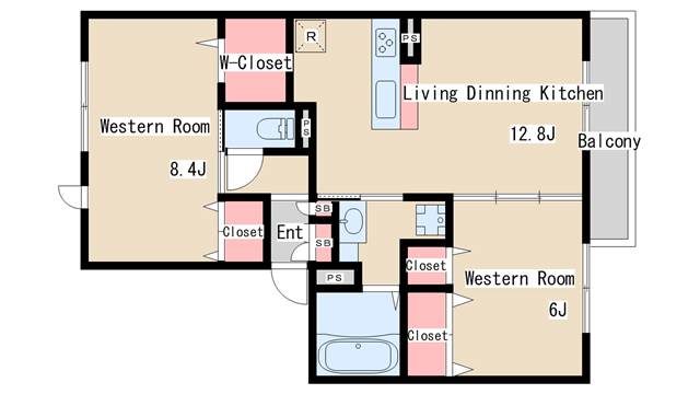 | 間取り | 2LDK | 間取り詳細 | 洋室6 洋室8.4 LDK12.8 |