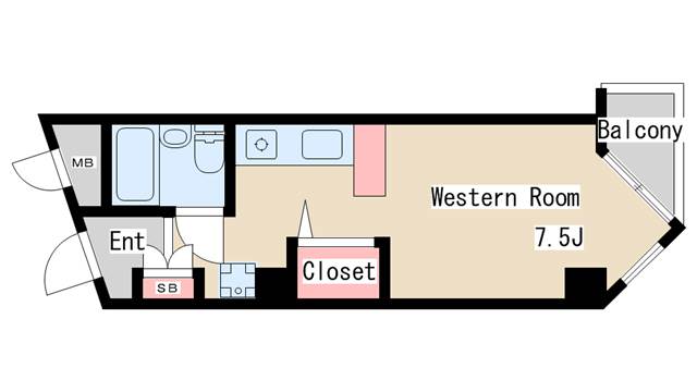 | 間取り | ワンルーム | 間取り詳細 | 洋室7.5 |